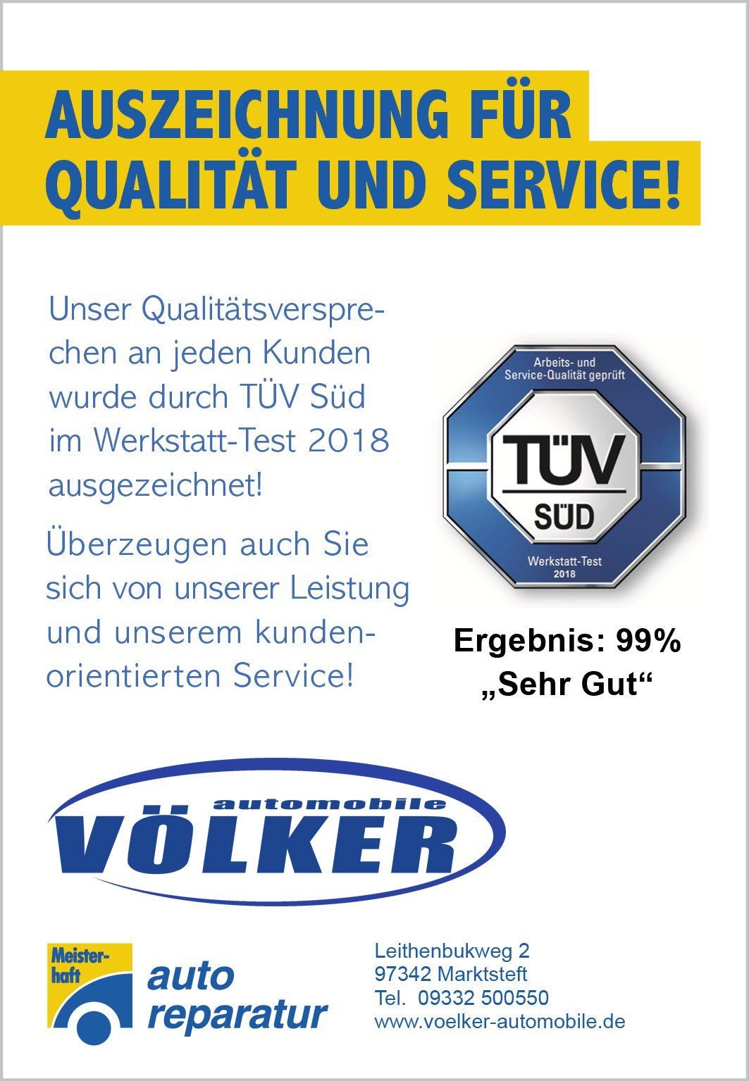 Der TÜV Süd hat in seinem Werkstatt-Test 2018 unsere Firma erneut unter die Lupe genommen.